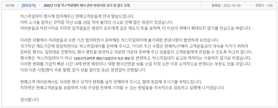 1. 국가적인 애도기간에 동참하면서도 기다려주신 판매자/구매자님들과의 약속을 지키기 위하여 행사는 일정대로 진행