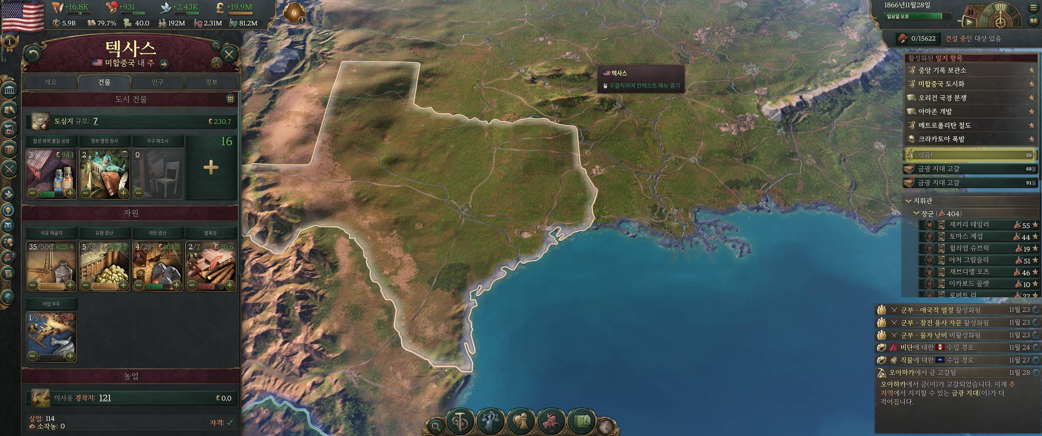 이 겜에서 미국땅 중 기름나오는 곳은 아래와 같은데 그중 2곳을 가져온거지