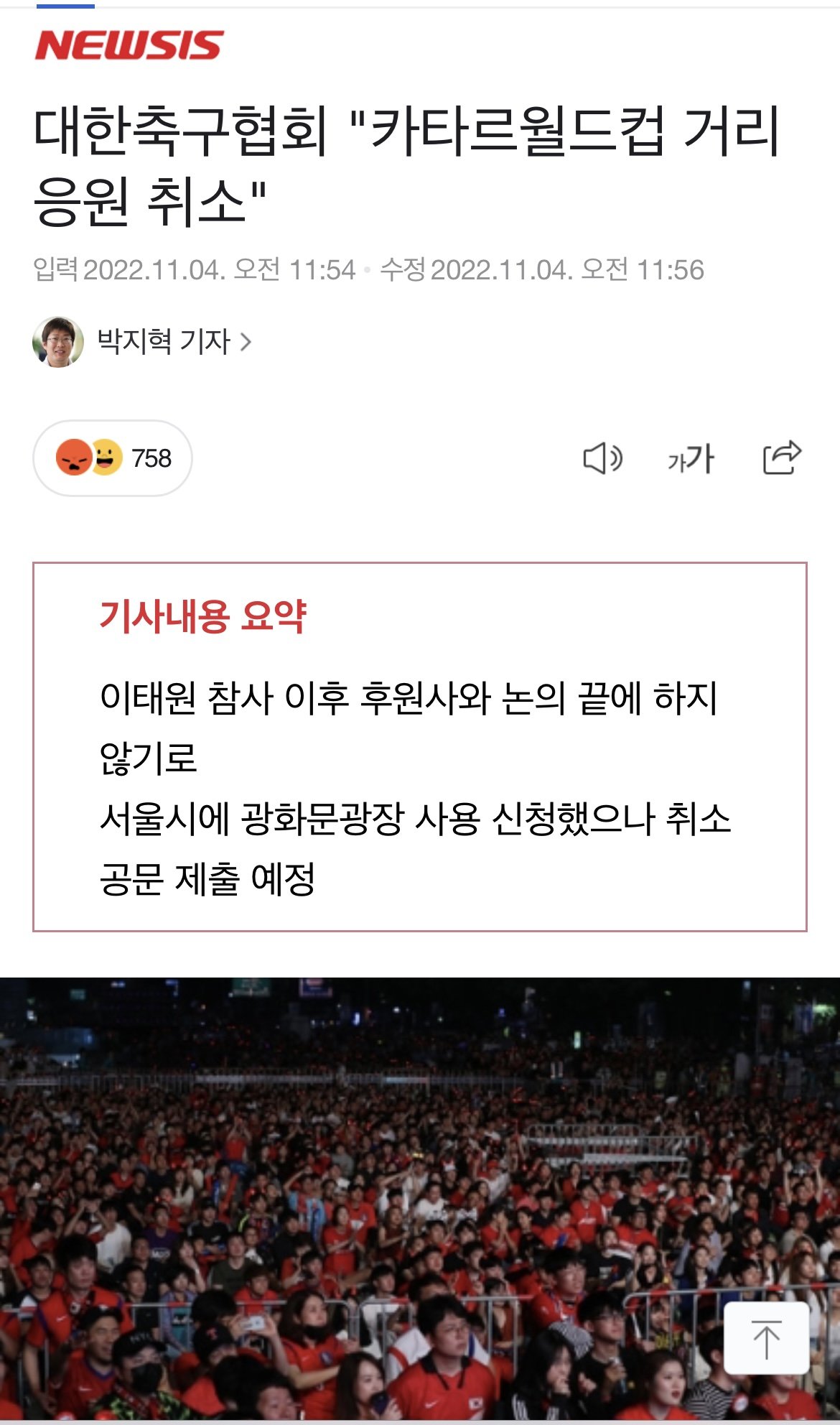 날도 추운데 거리 응원을 하려고 했다니