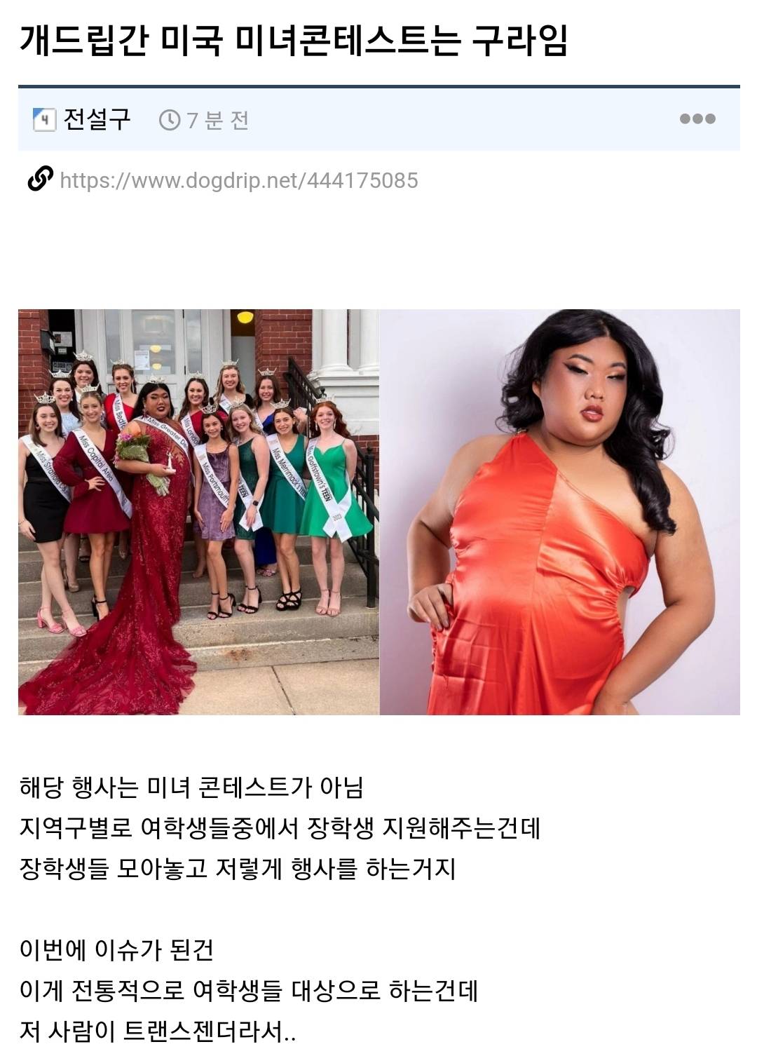 미녀 콘테스트를 해서 장학금 주는건데