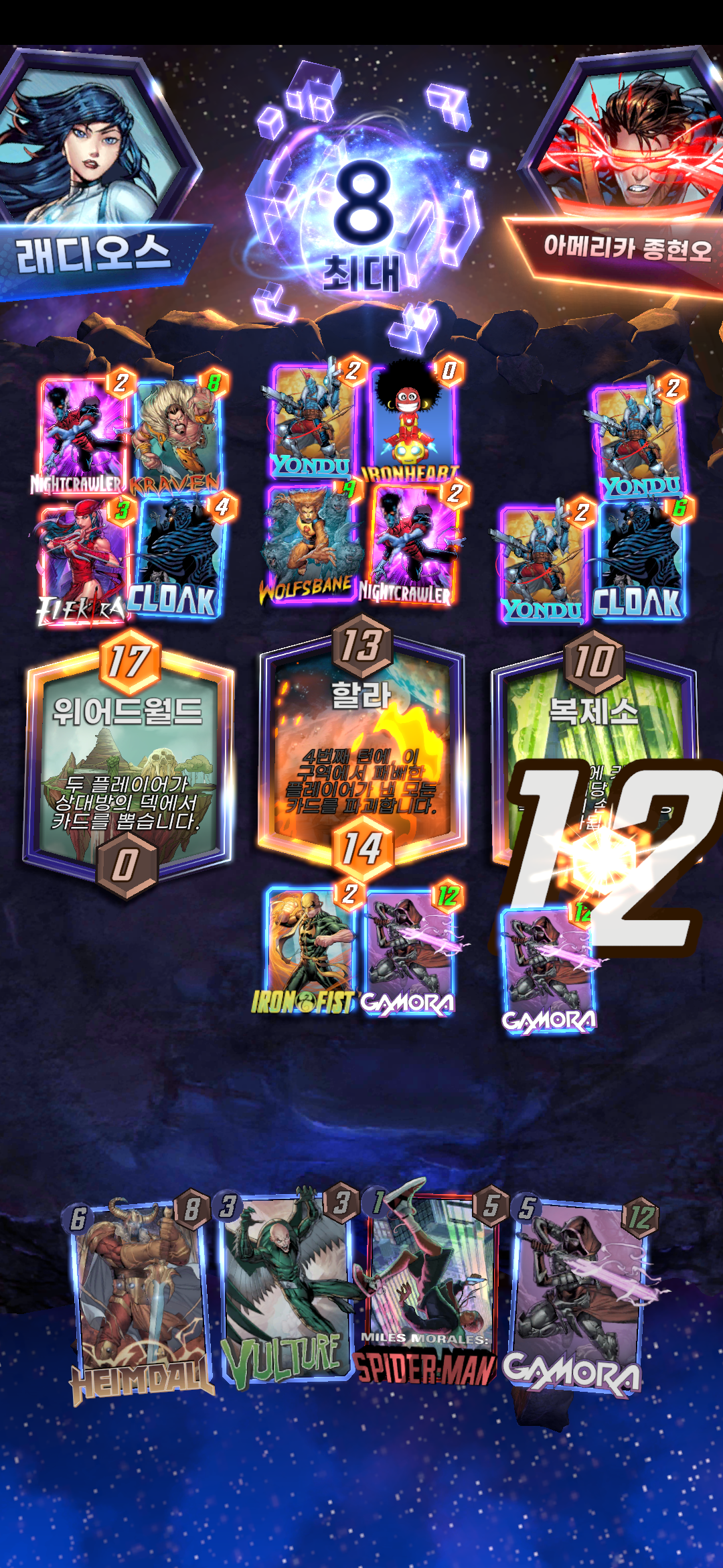 원래 있던 레이븐 + 내 나이트크롤러 이동 + 상대 나이트크롤러 이동 + 울프스베인 출현으로 한턴에 파워를 15 올리는 바람에