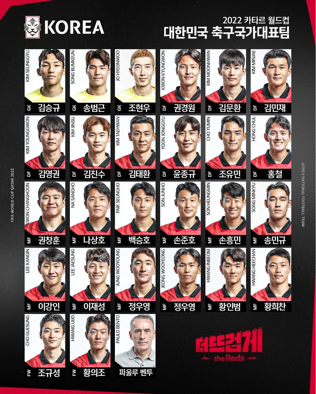 MF - 정우영(큰), 손준호, 백승호, 황인범, 이재성, 권창훈, 정우영(작), 이강인, 손흥민, 황희찬, 나상호, 송민규