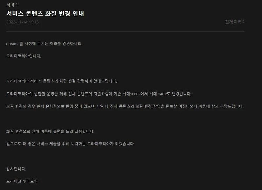 망사용료 문제로 저화질 내지는 제제가 들어감