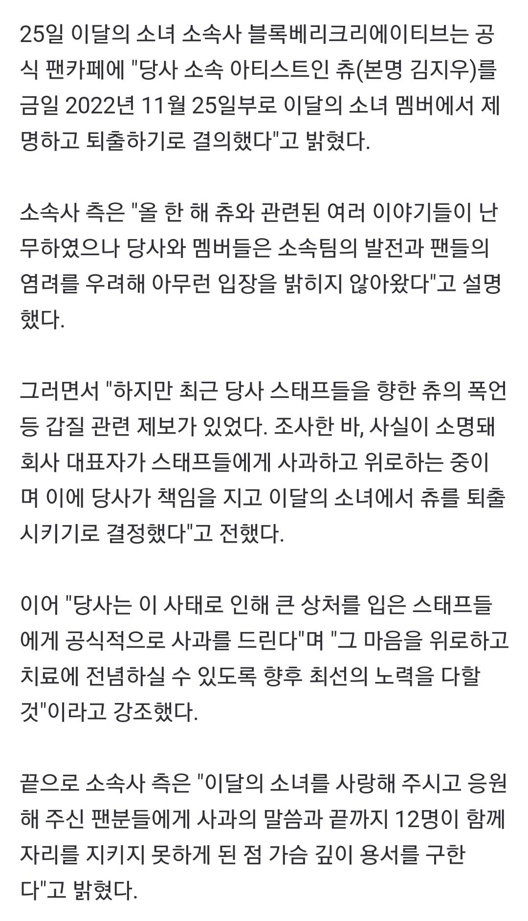 일단 실제 사실관계는 더 봐야겟지만 츄 이미지최대한 깎아먹으려고 보복질하는걸로 보이긴함.
