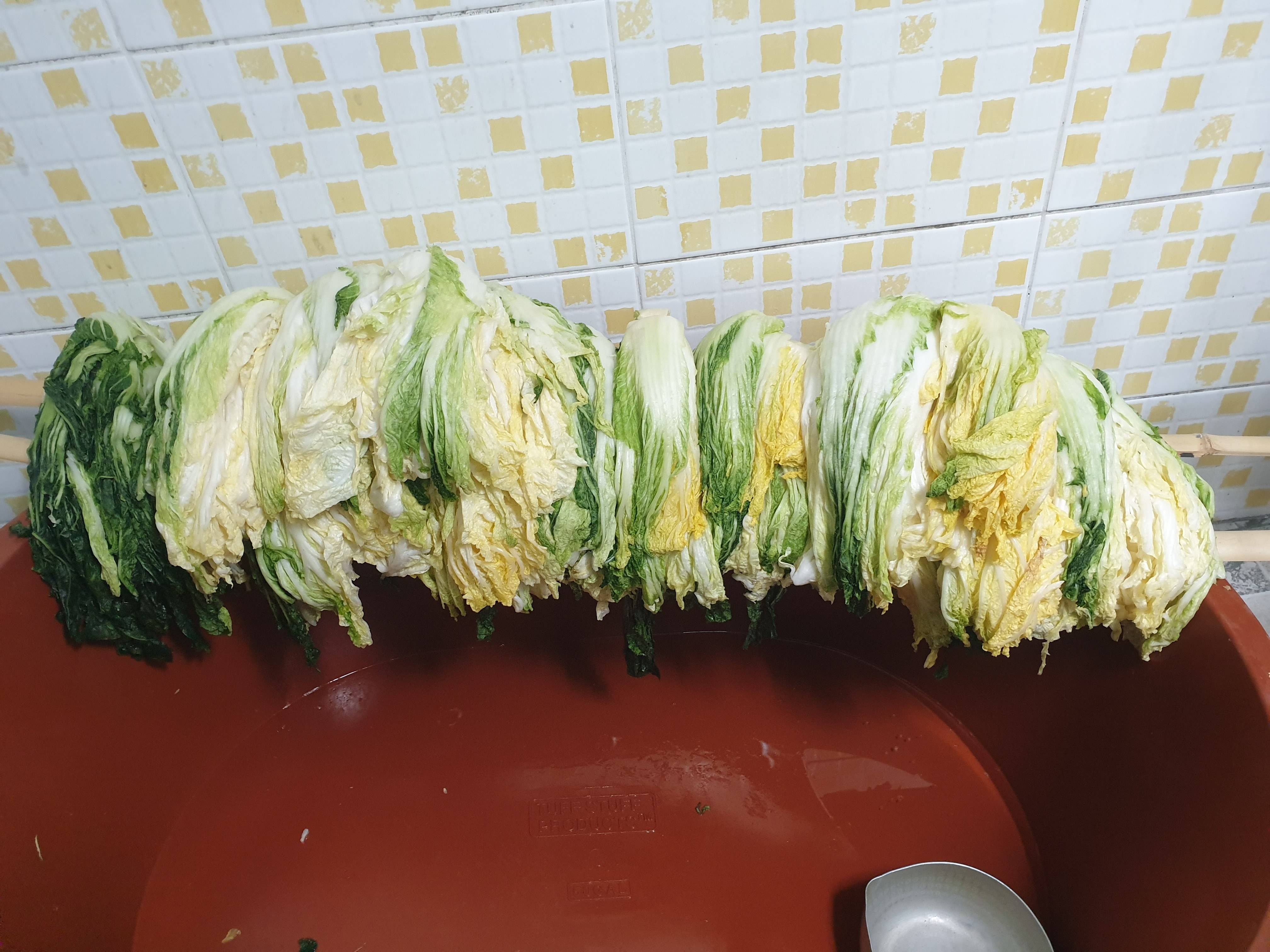 어제 고모 밭에서 배추 받아와서 절이고