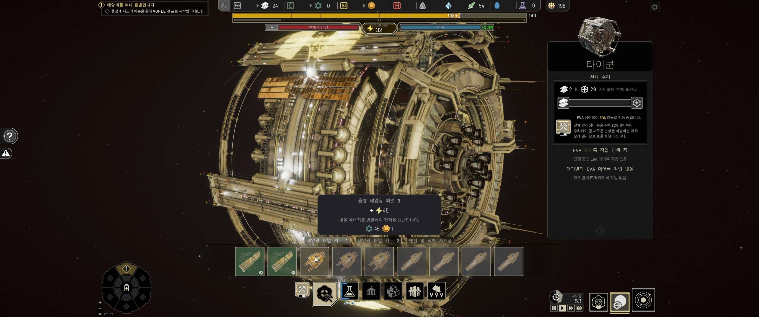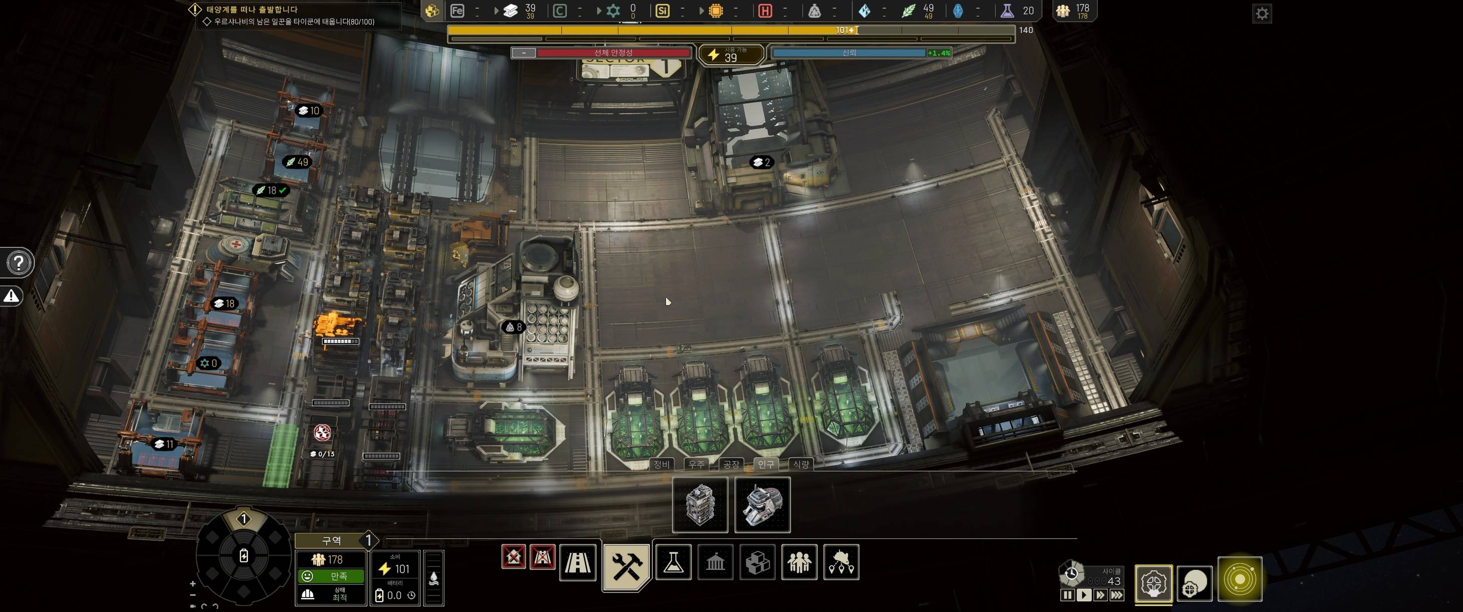 이렇게 우주선 한 구역에서 건설을 하고