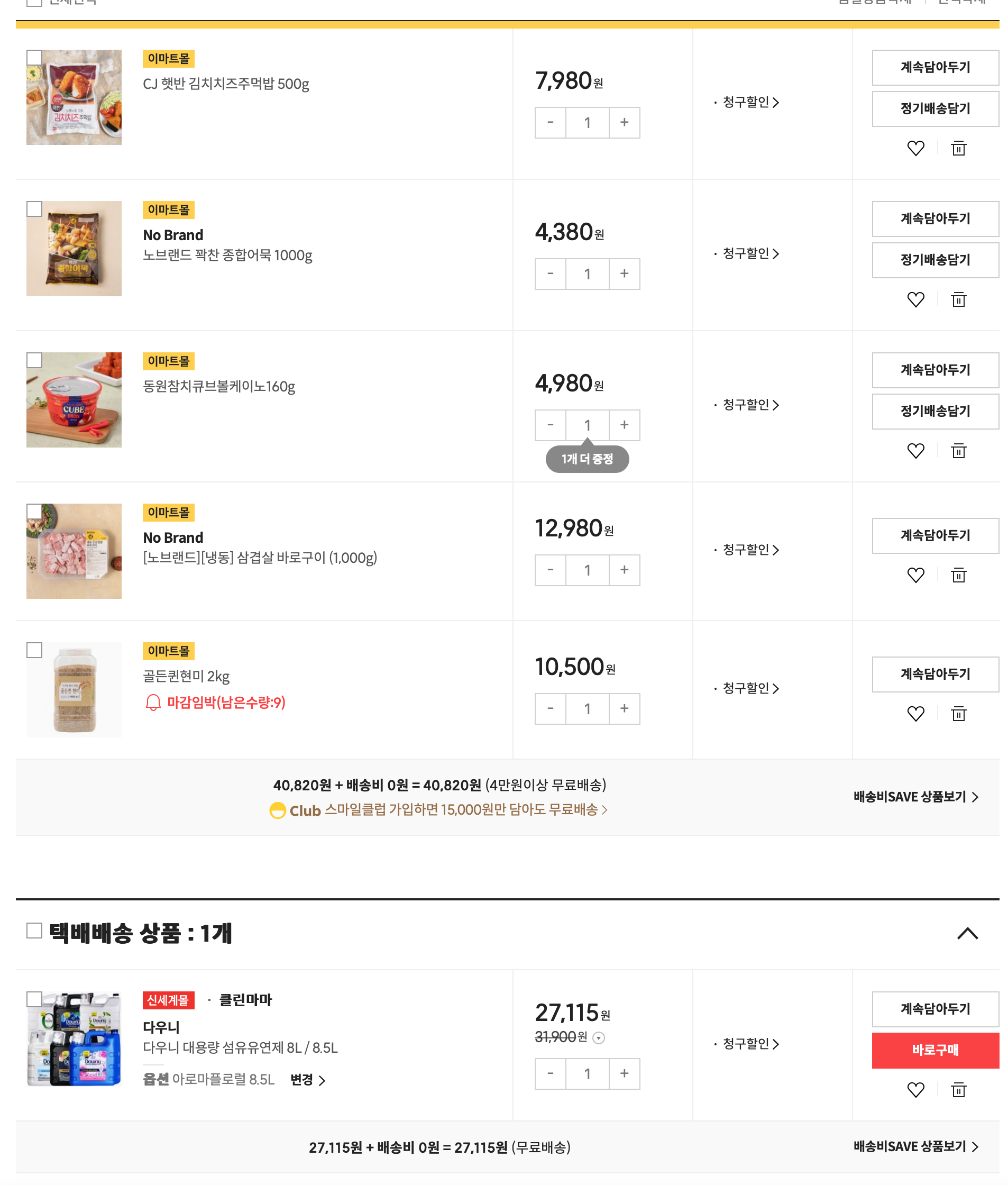 냉동으로 다 얼려놓기도 했고, 김치도 있으니 뭐 됐나