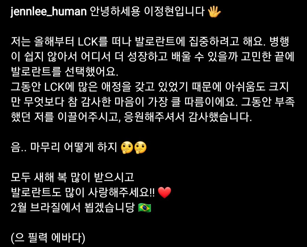 이정현 아나 하차 (발로란트 쪽에 집중한다고.)