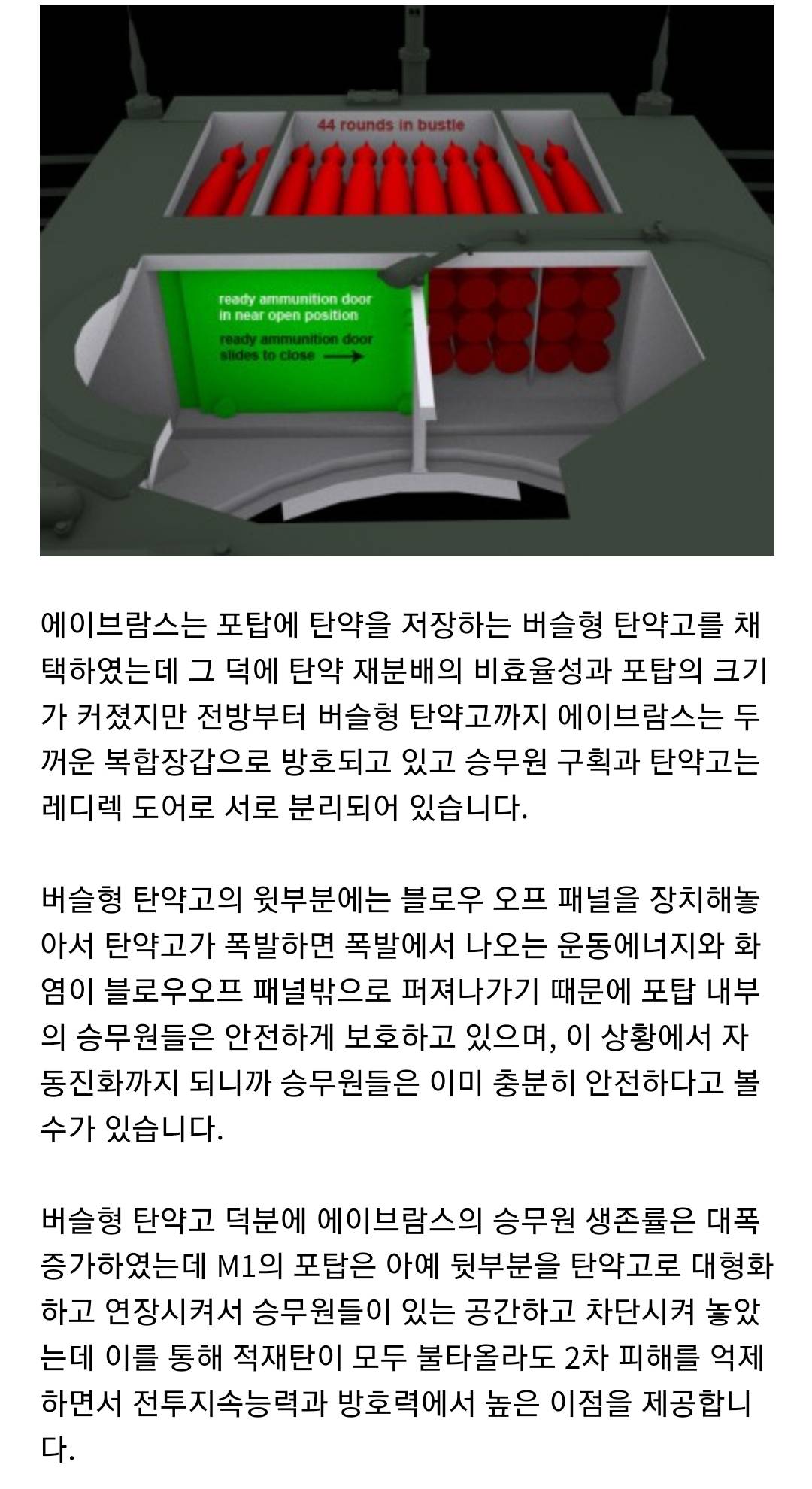 전차도 탄약고 유폭시 승무원 생존율 높이려고