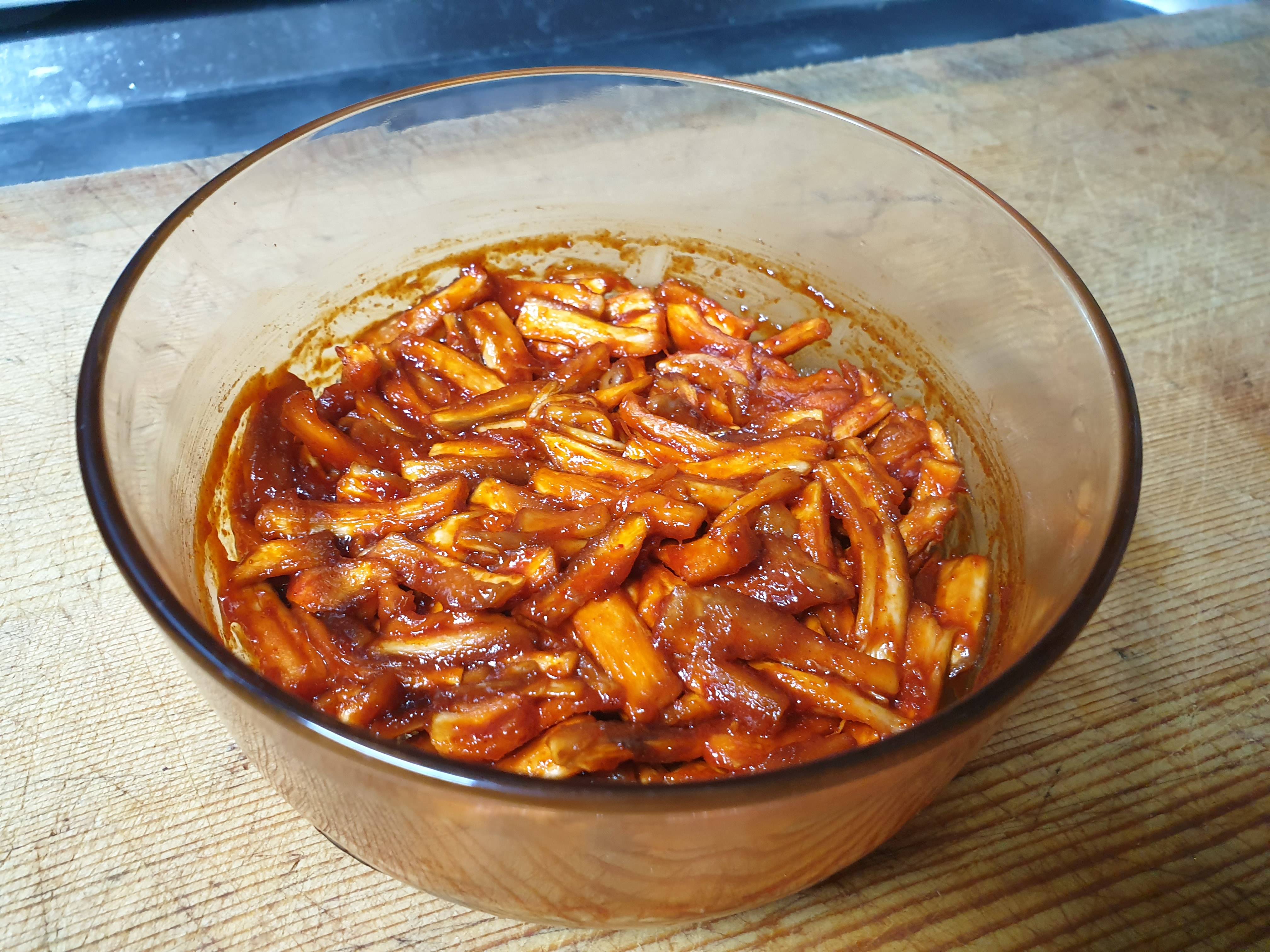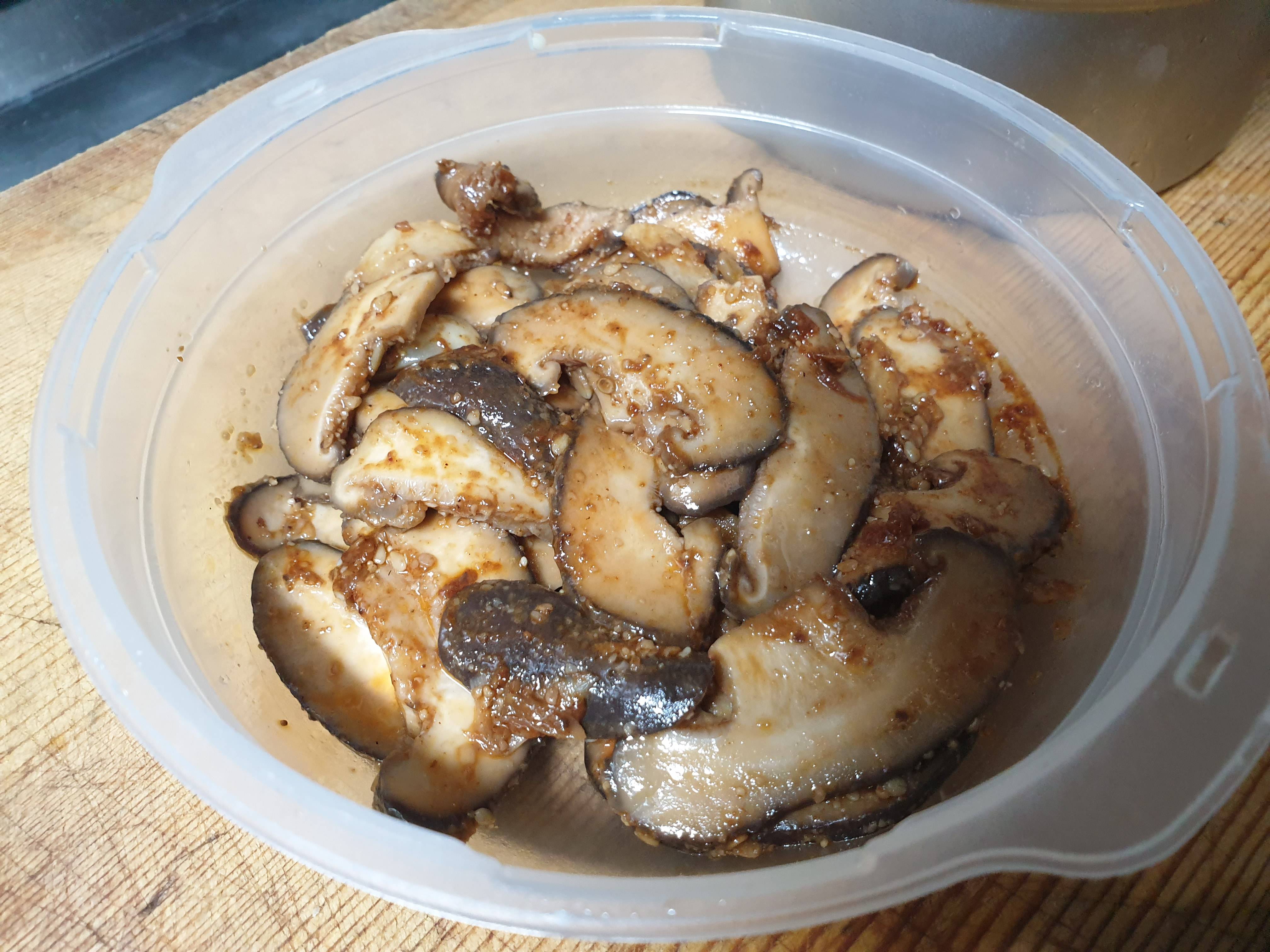 이건 0.5정도로 깍뚝썰기한 표고갓이랑 양파 간마늘에 간장 고추장으로 간하고 들기름으로 볶은 양념고추장