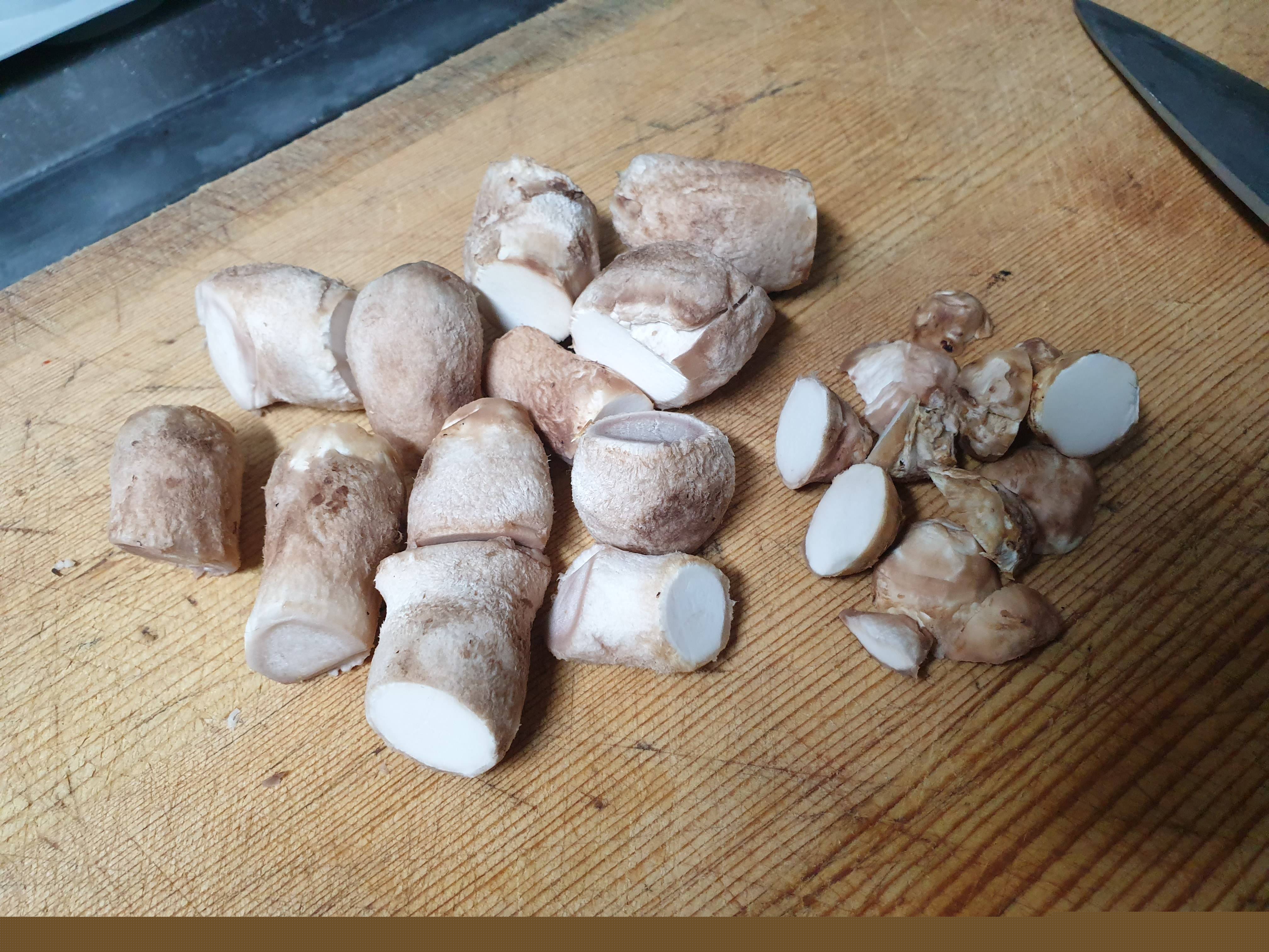 보통 밑둥이랑 갓이랑 식감이 따로 노니깐