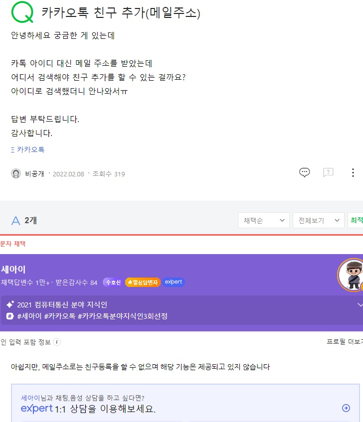 쪽지 열었는데 카톡아이디가 아닌 메일주소라서