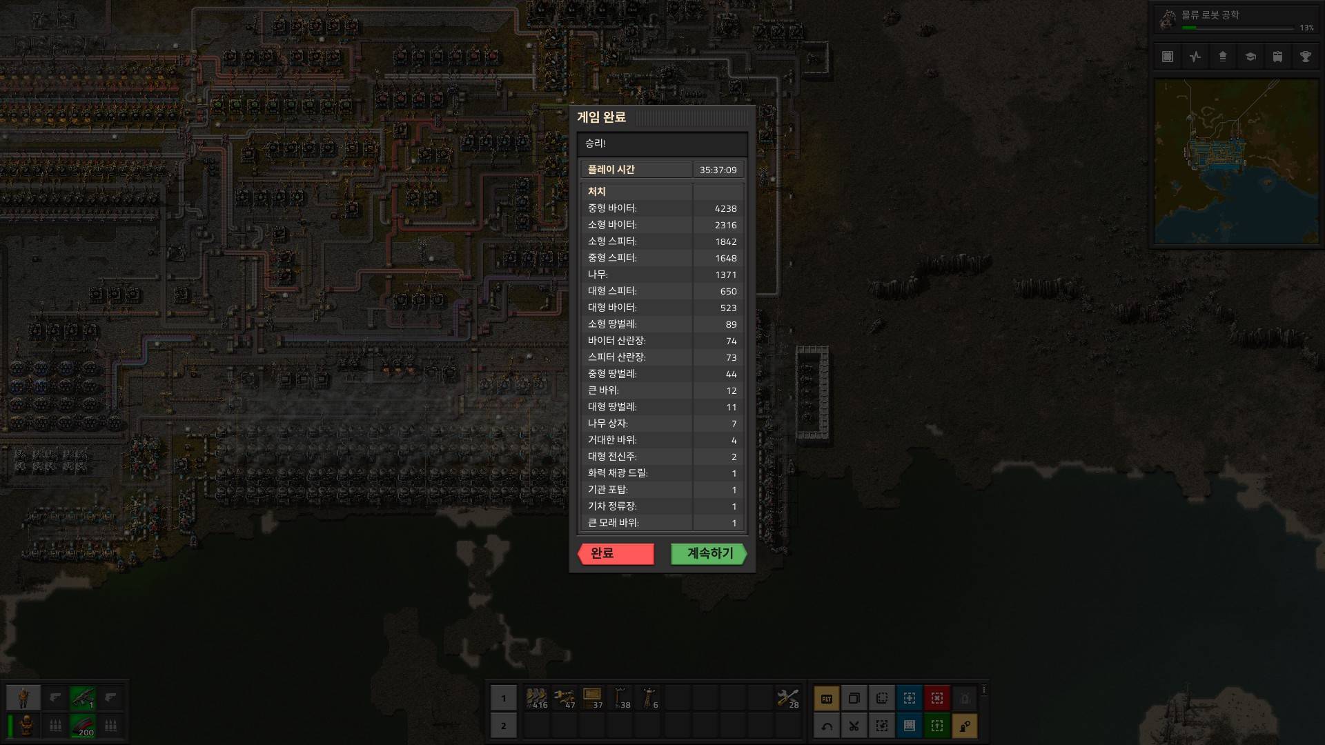 이번판에 못해본거 : 핵발전소, 핵폭탄 등 원자력 관련된걸 하나도 못해봄. 우라늄을 못찾아서...