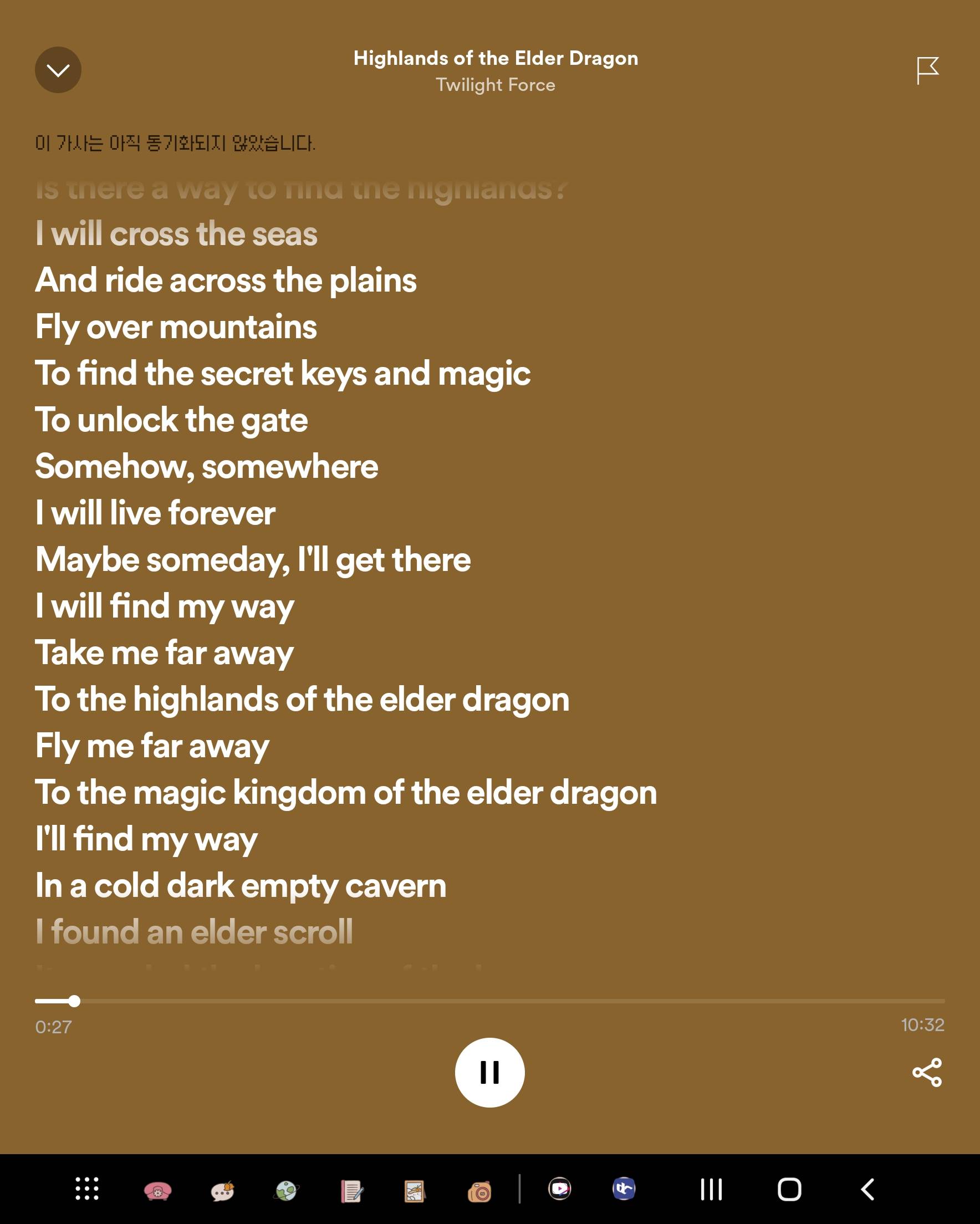 가사도 바다건너 마운틴넘고 시팔 그놈의 far away도 드래곤도 나오고 근본에 충실함