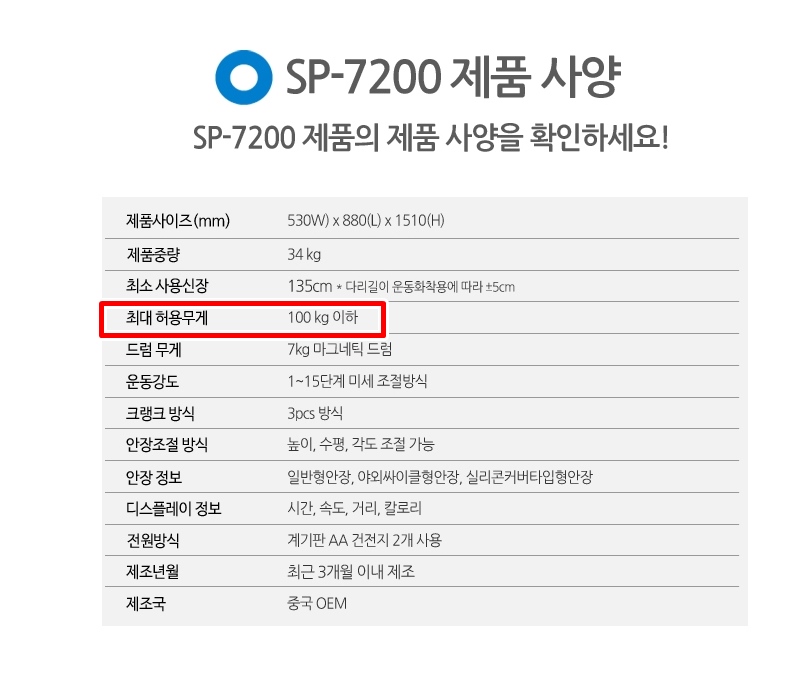 이 실내자전거 스펙을 살펴보니까
