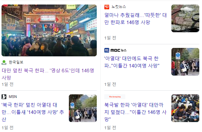 우리한테 왔던 한파 영향이 대만까지 갔는데
