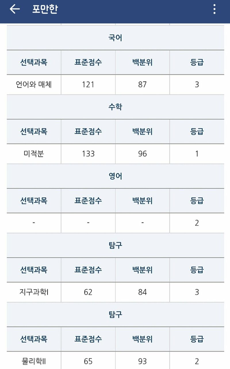 등급은 퍼센티지라 전체 수험생이 줄어들면 상위 등수도 등급은 낮아짐 이건 전체에서 몇등을 했냐를 봐야될듯