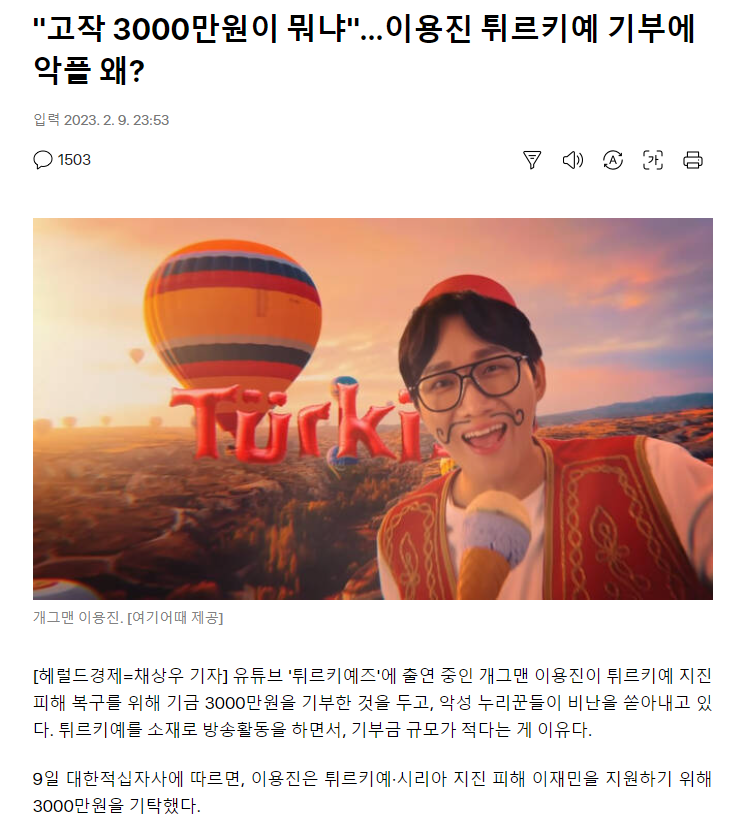 기사엔 안나왓는데 지진 터지고 나서부터 기부 안하냐부터 시작했다고 함