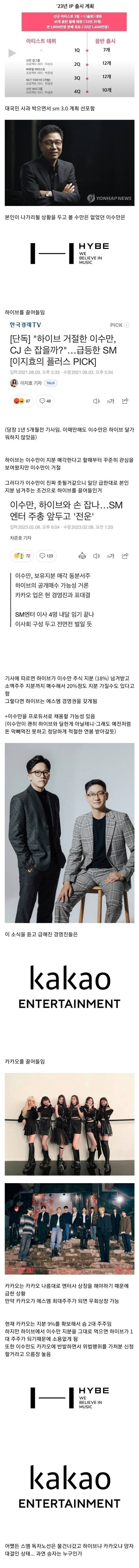 하이브 카카오 끌어들인 순서가 저게 맞나