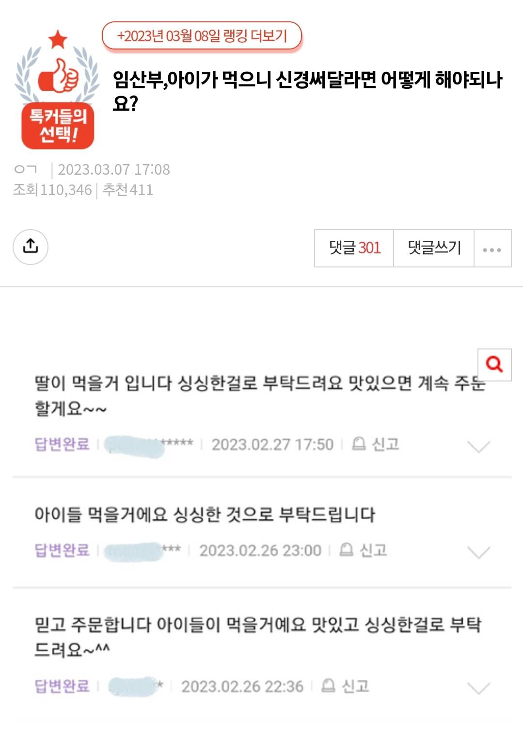 평소대초만 보내면 임산부 먹는다고했는데 아무신경 안썼네요 실망이에요 평소대로하고 메모 적어보내면 매모만 적어놓고 평소와 같네요 퓨 한번이라도 더 주거나하면 다른사람들도 다 더 챙겨줘야돼