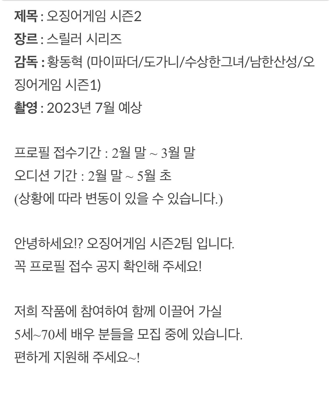 조연, 단역 오디션 공고