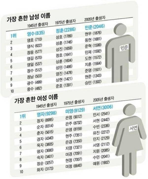 여자는 일본이름 쿄 흔적이고.. 75년대 성자가 많이 들어가는건 고도성장기 입신양명을 추구해서인가