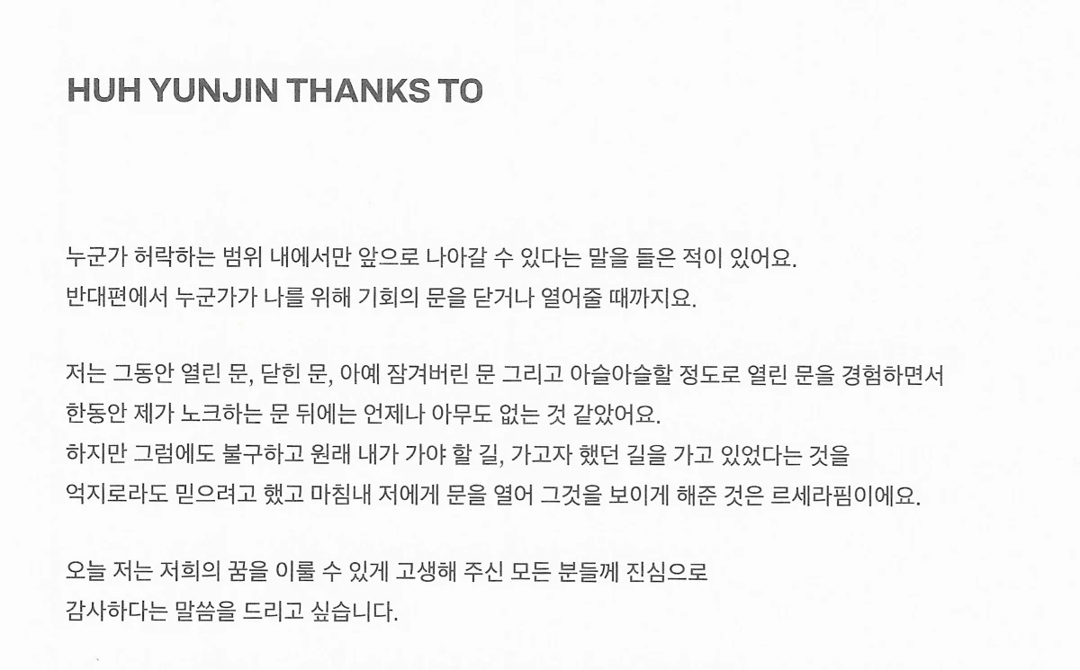 중간에 문 드립은 데뷔 앨범에 있는 허윤진 땡스투 문구 차용.