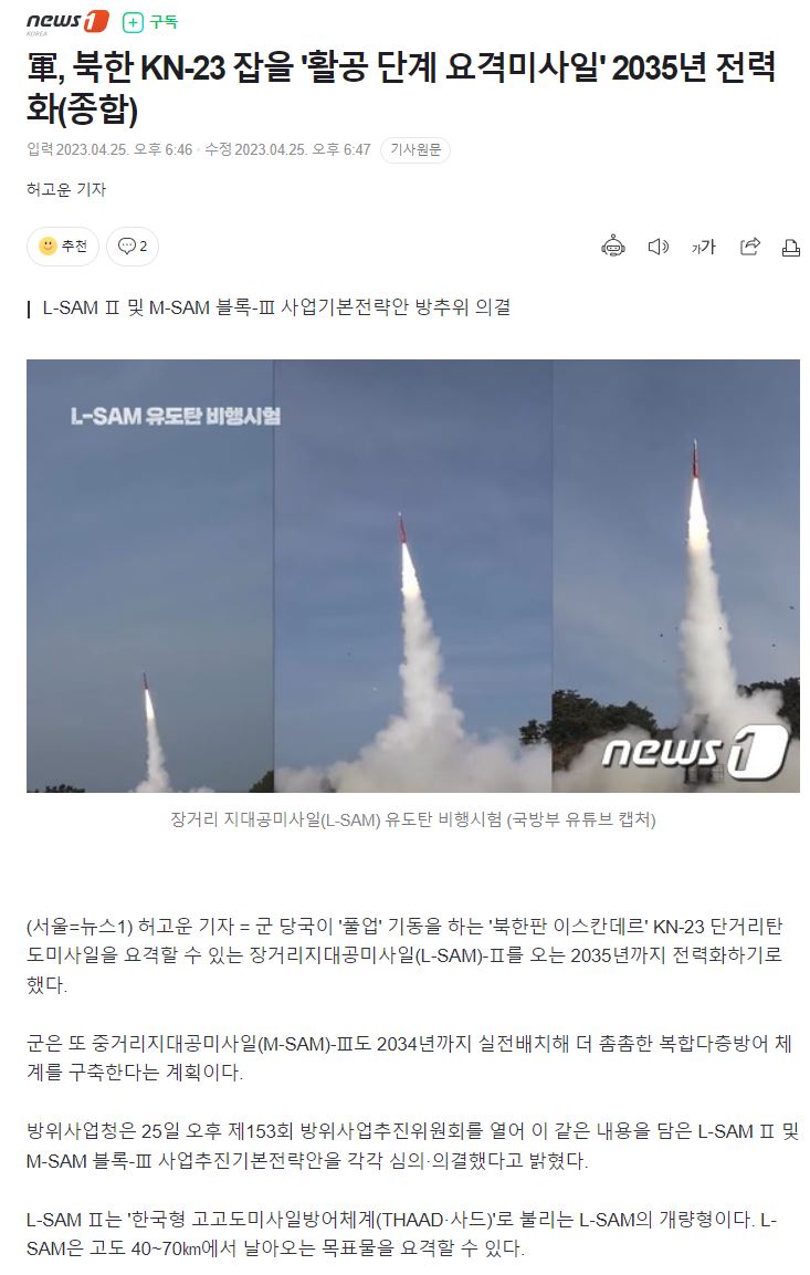 북괴 미사일 막을 수단이 2035년에 전력화면