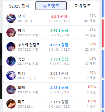 이거보다 승률 더 높일려면 캐리챔 해야 할듯