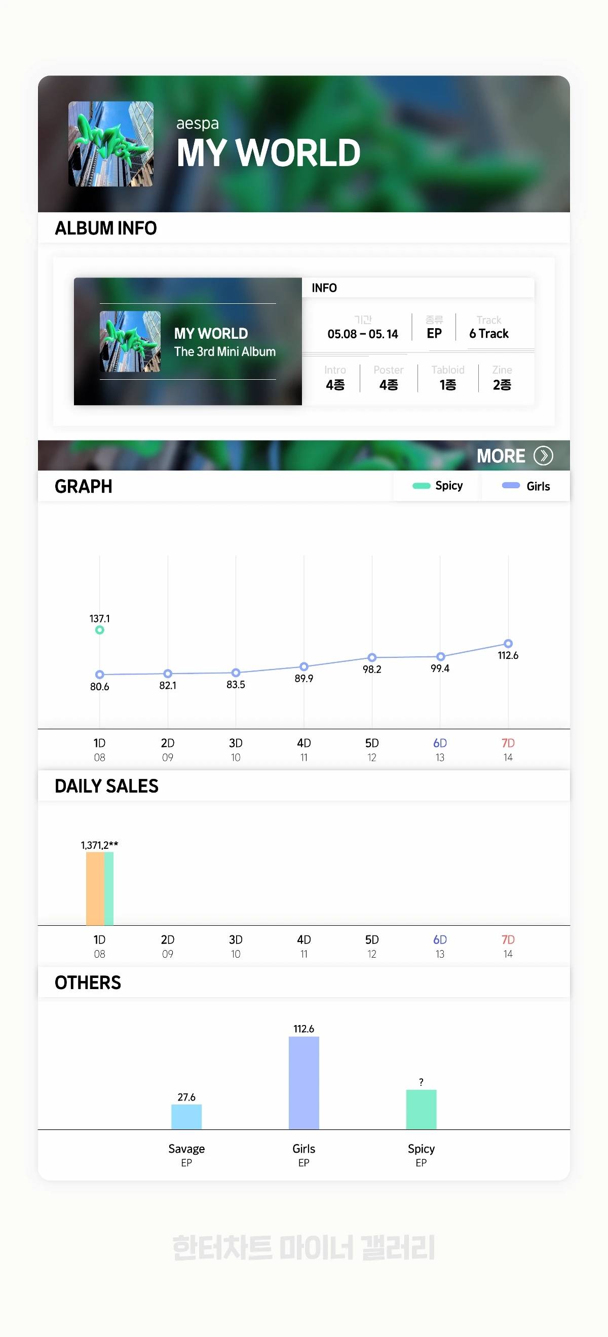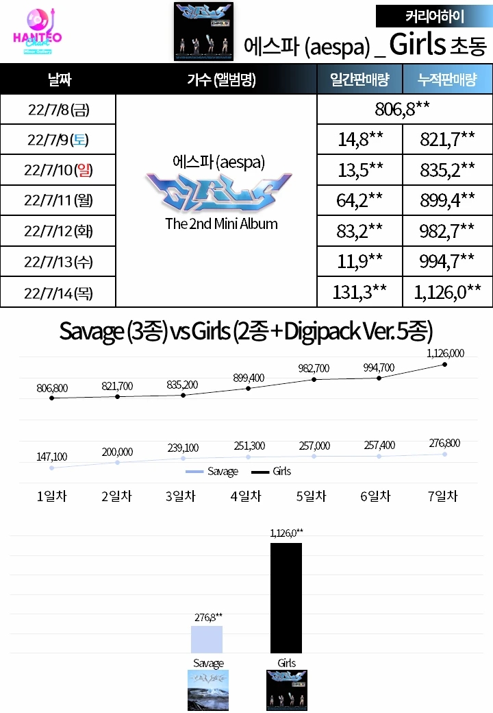 에스파가 오늘 발매한 앨범 첫날 기록이 저녁 9시 조금 전 기준으로 137만장 돌파.