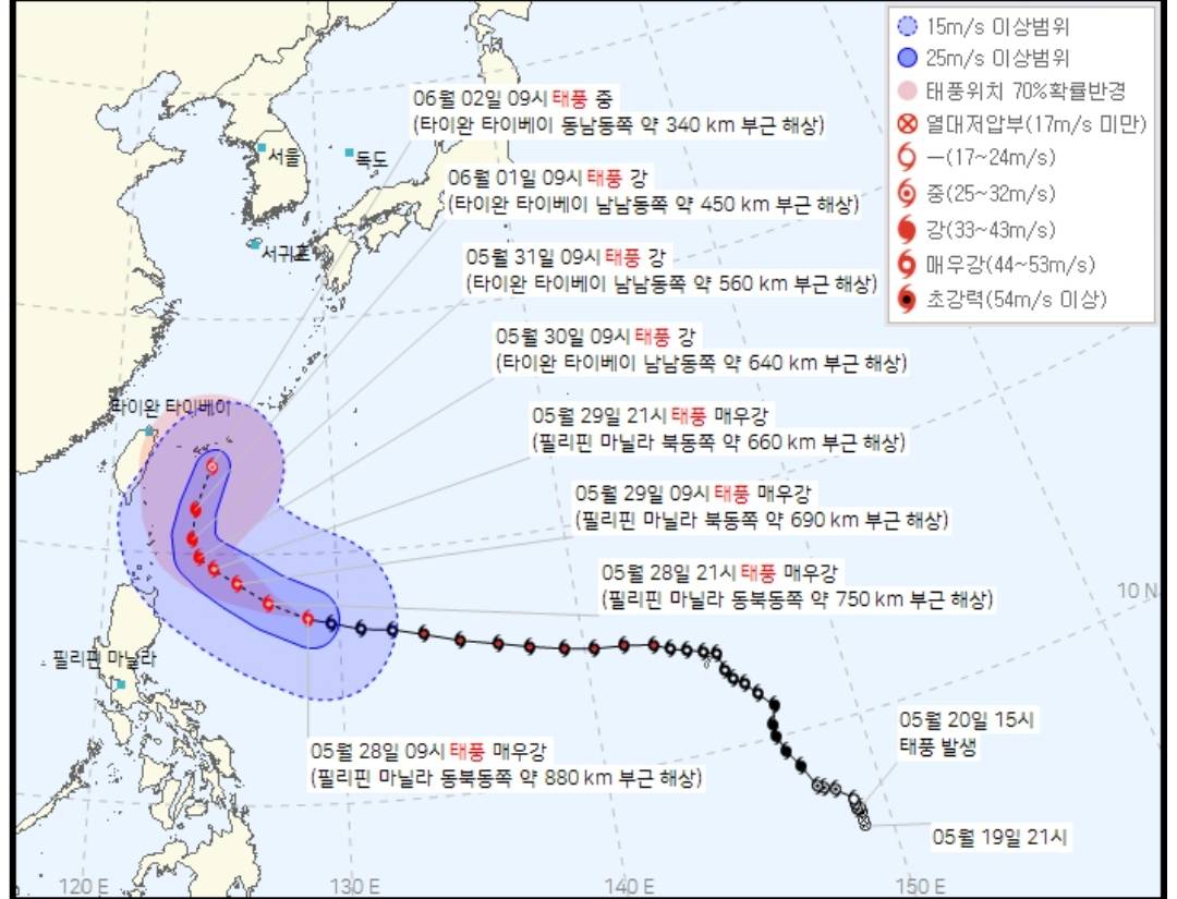 괌조진 마와르가 오키나와 통과 후 쪽본으로 갈 것으로 예상