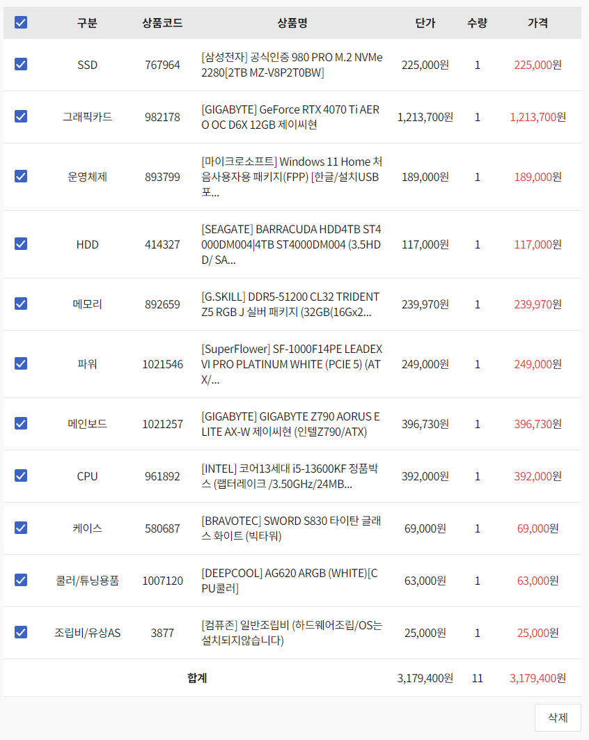 1. 부품간 호환 여부 체크