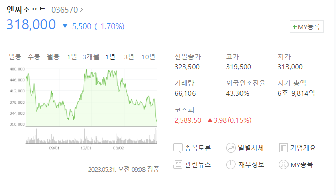 52주 최저가 찍음