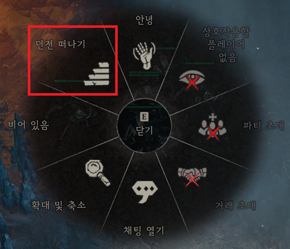 피시기준 E누르면 위에창뜨는데 던전나가기하면 입구로가진다