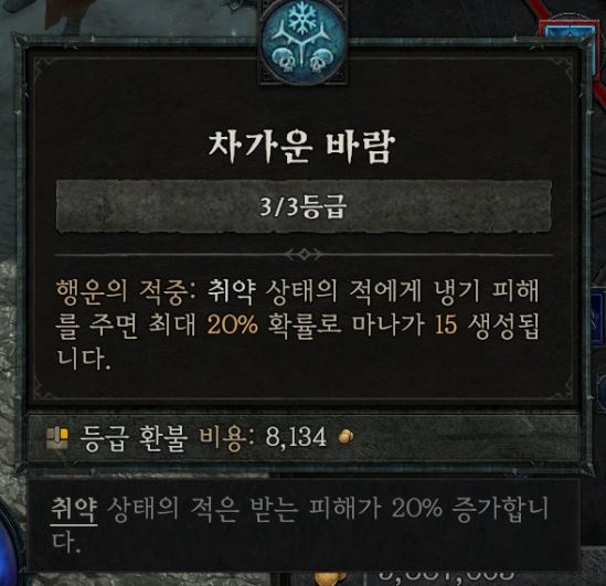 패시브 중에 행운의 적중: 취약상태 적을 패면 20% 확률로 15 마나 줌