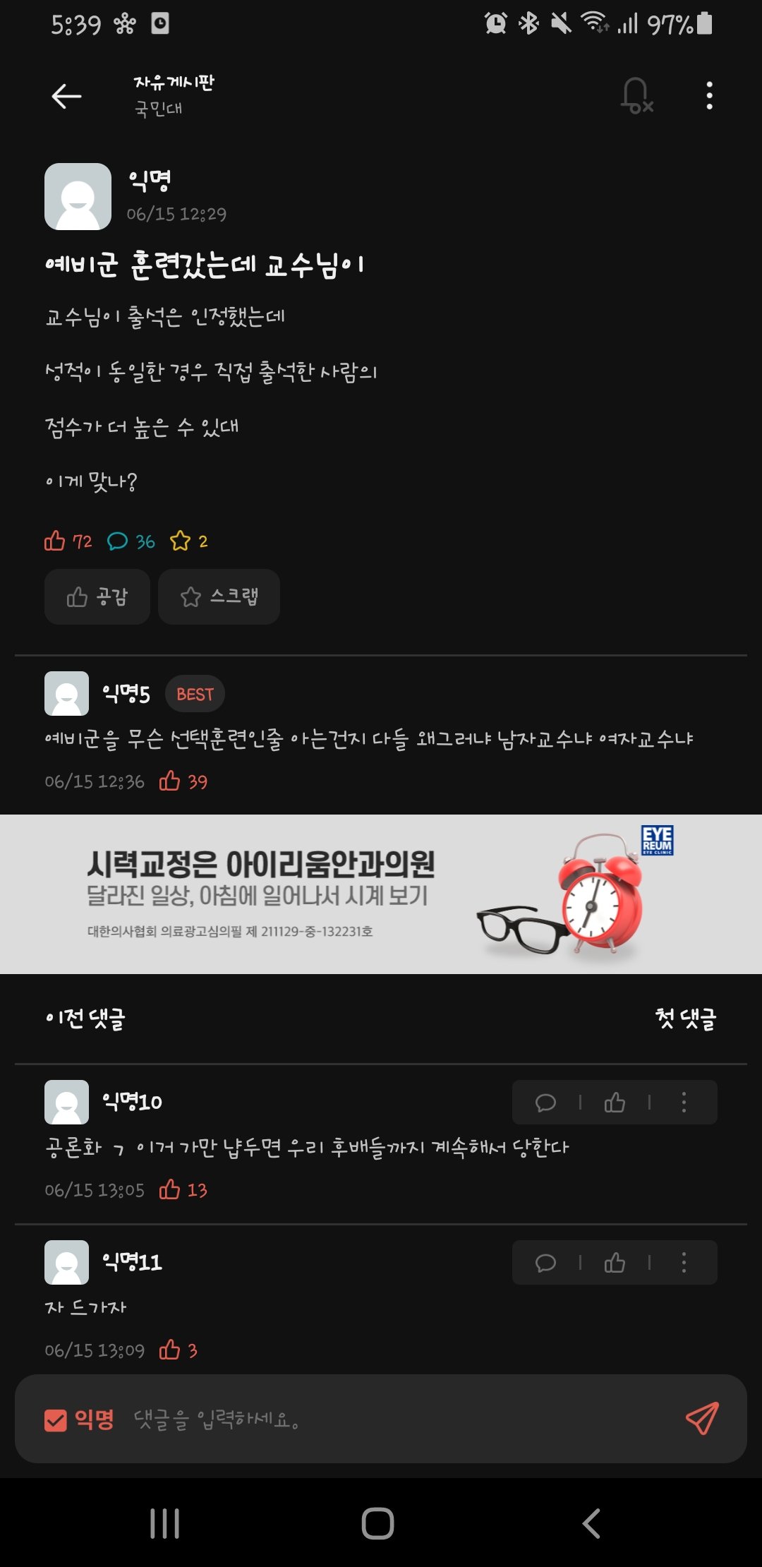 저질알하는 교수들 싹다 미필이지? 훈련소 1달만진짜 뒤지기 직전까지만돌아봐야 정신차리지
