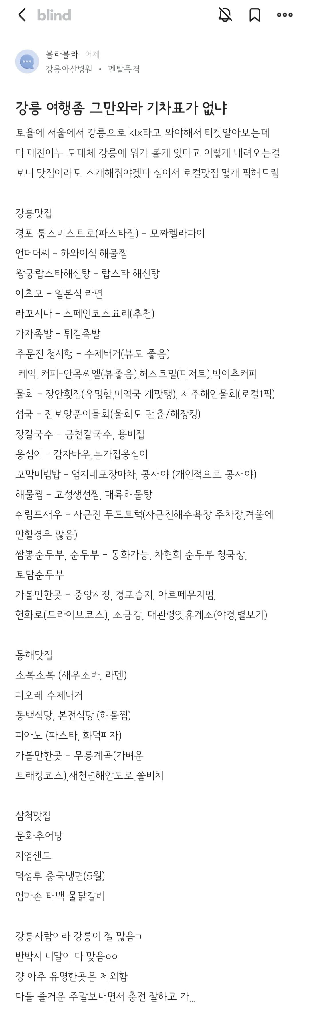 속초 출장갔을때 초당짬뽕순두부 유명하다고해서 1시간 기다려서 먹어봤는데 존나 맛없더라 ㅡㅡ 시발 이걸 왜 줄서서 먹는지 노이해..같이 먹은 차장님도 줄서서 먹을건 아니라고..바쁘다보니 서비스도 개판