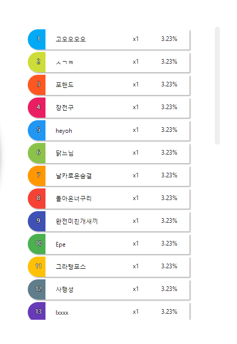 일단 돌림판에서 빠진 인원들이 당첨자임