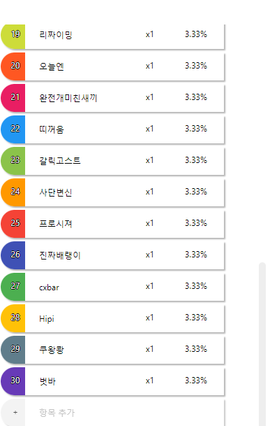 요건 초기 순서 랜덤하게 정렬해서 돌림판에 넣음