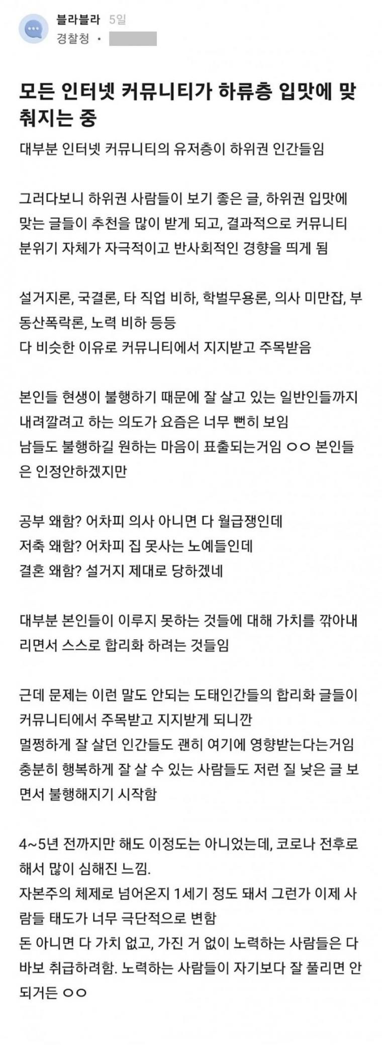 현실에 만족 못하는애들이나 저런 거 쓰고 반응보면서 희희덕거리지 행복하게 잘 사는사람들이 저런 글 쓸 이유가 없잖아