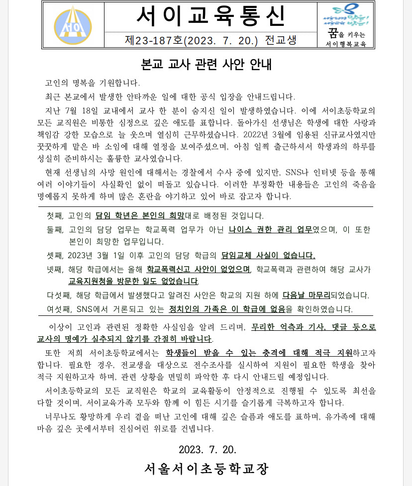 서이초 입장문 나옴