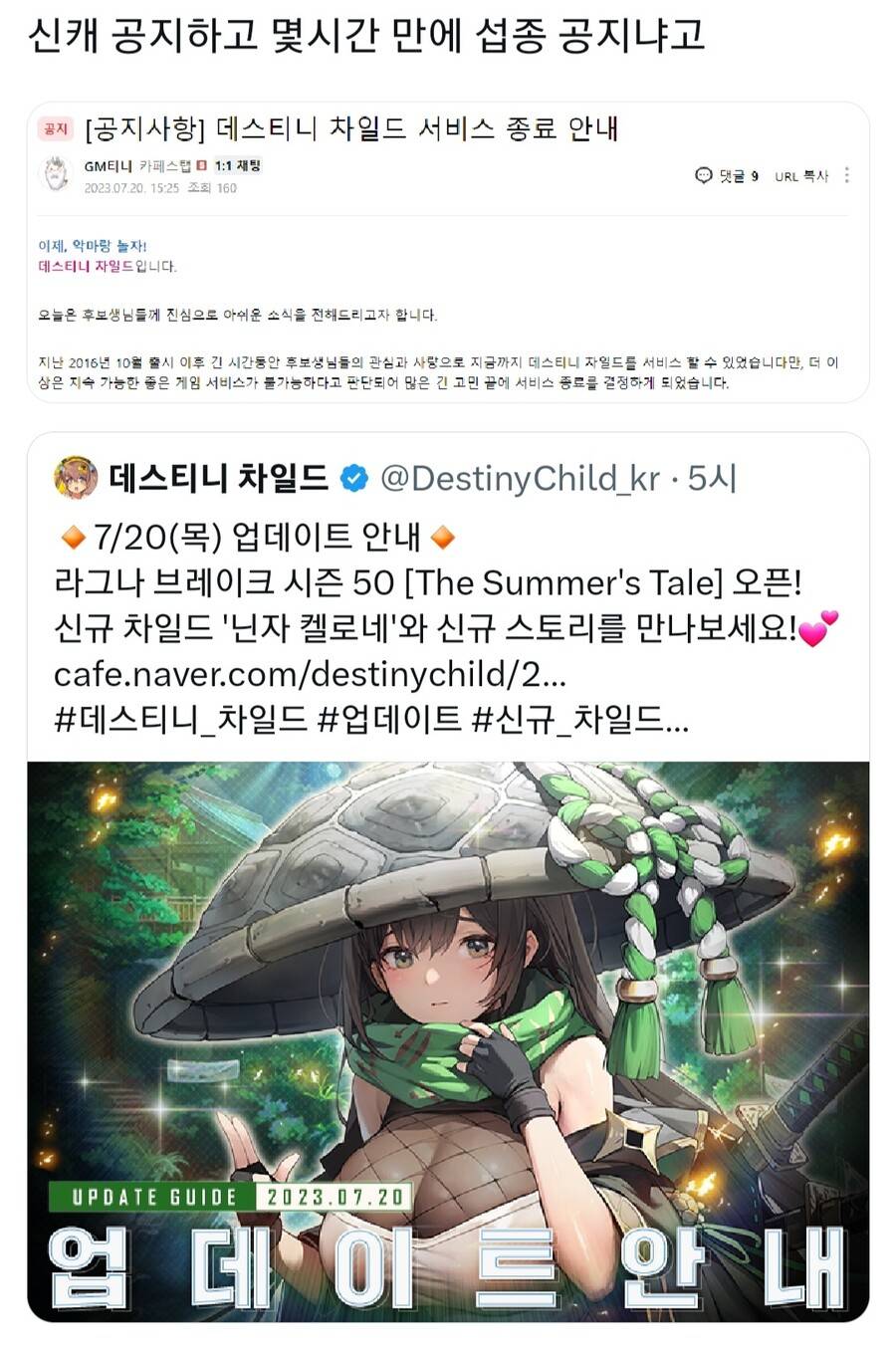 걍 섭종때리네