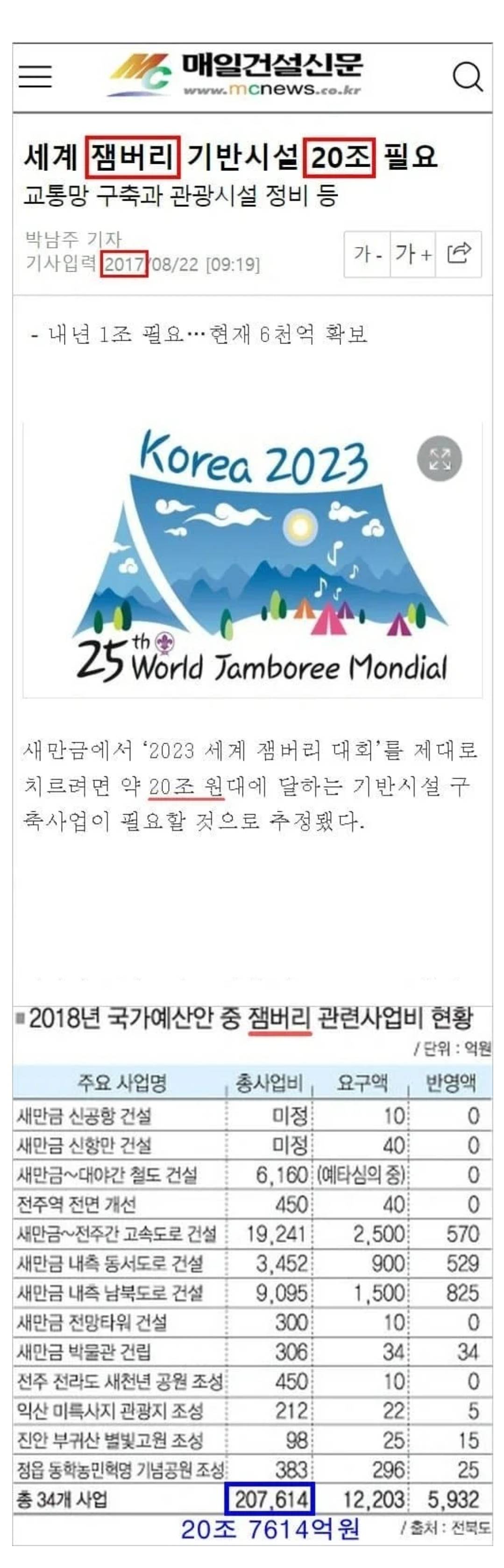 잼버리 예산이라고 하지만 사실상 잼버리는 지들 개간사업하는 구실일뿐