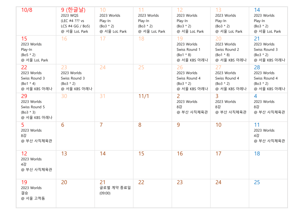 10월~11월에는 롤드컵으로 버티면 연말이다