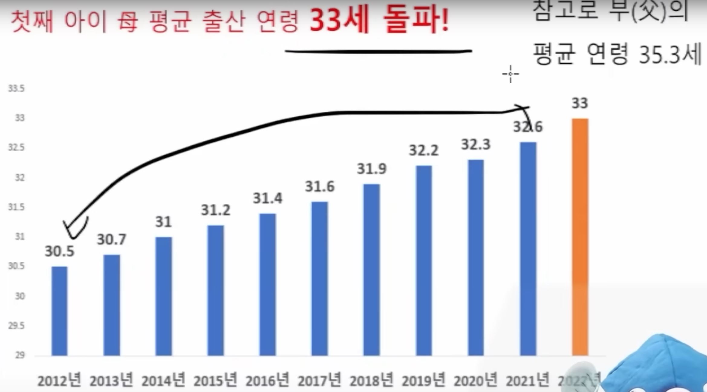 첫출산 엄빠 나이 엄청 올랐음