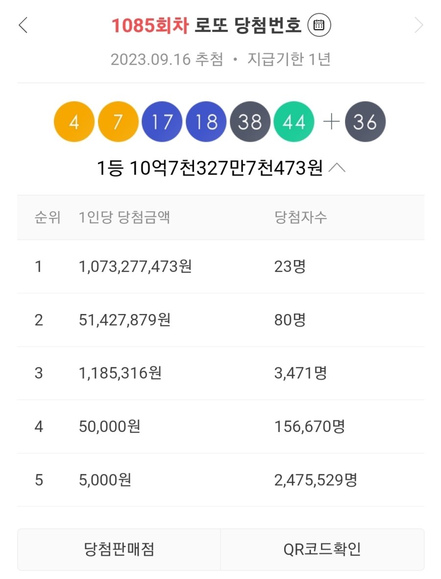 1등 당청금은 총 당첨금 중 4, 5등을 제외한 금액의 75%임
