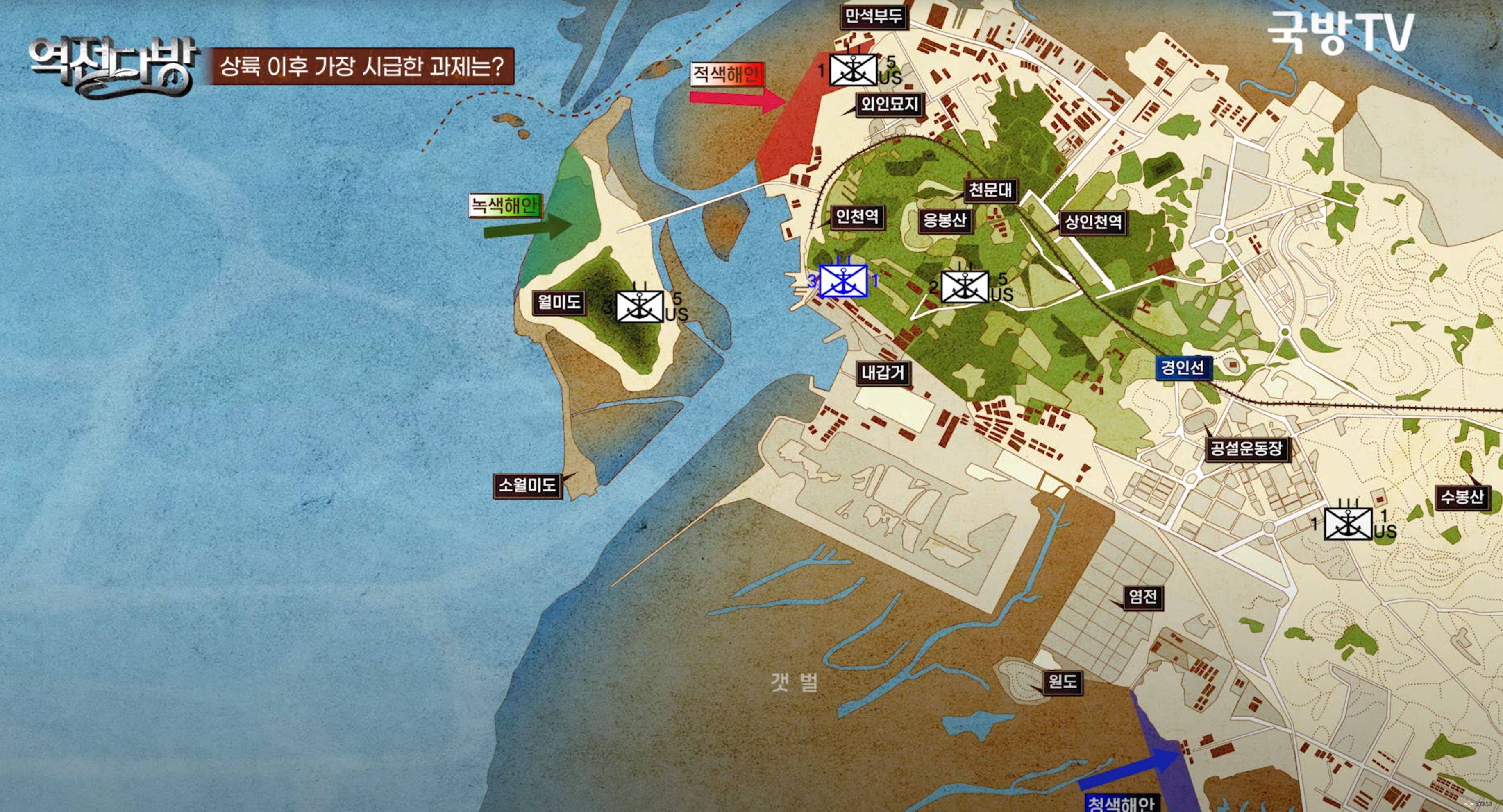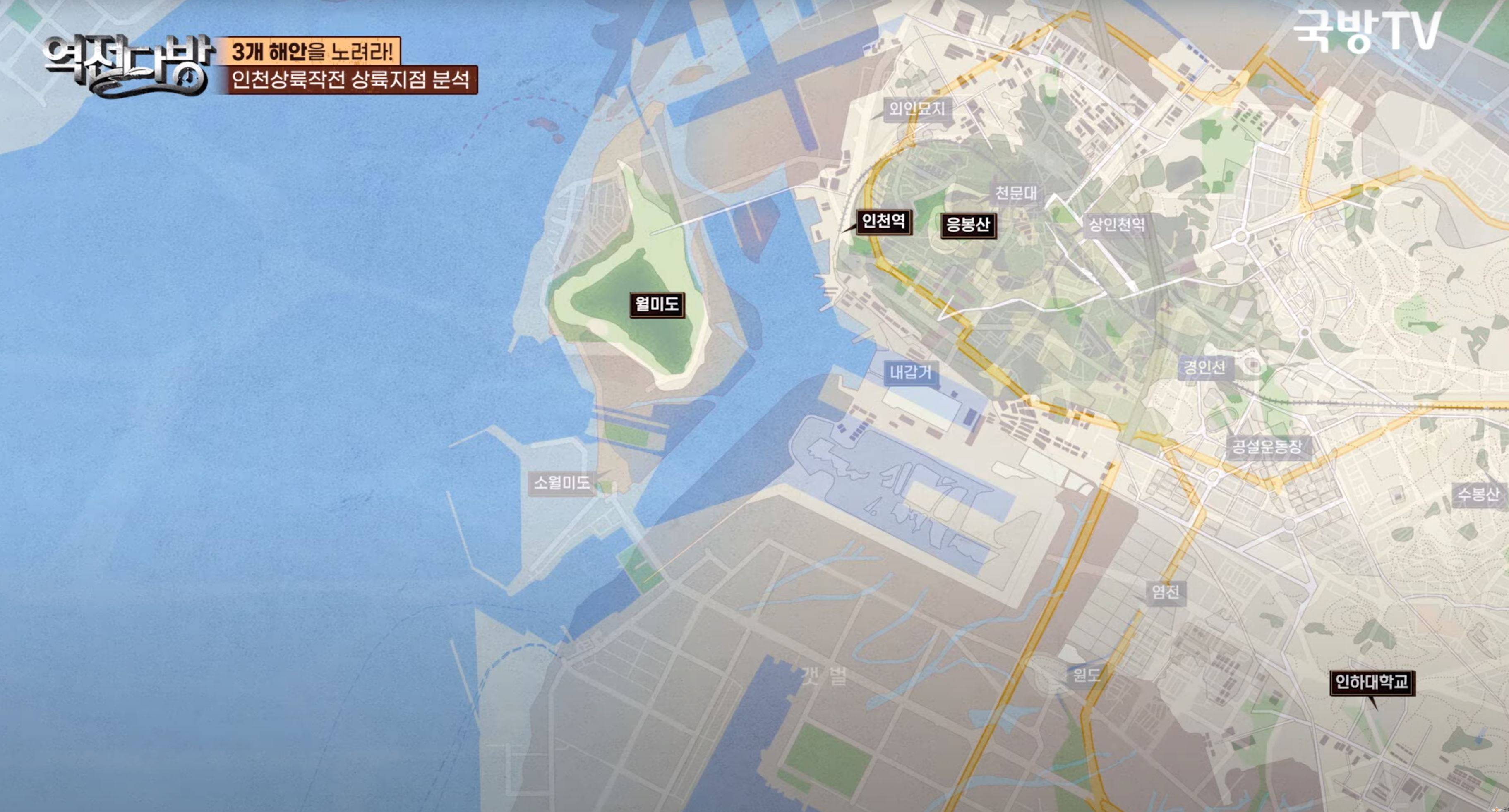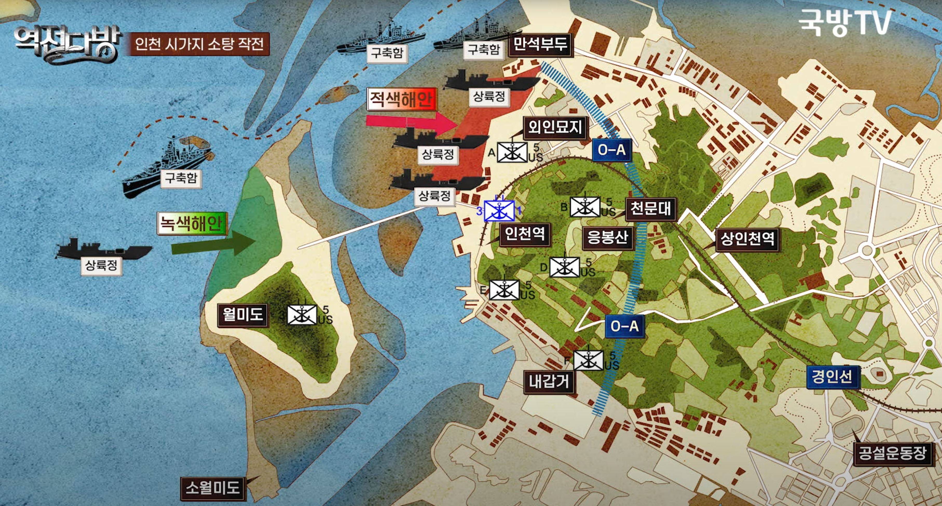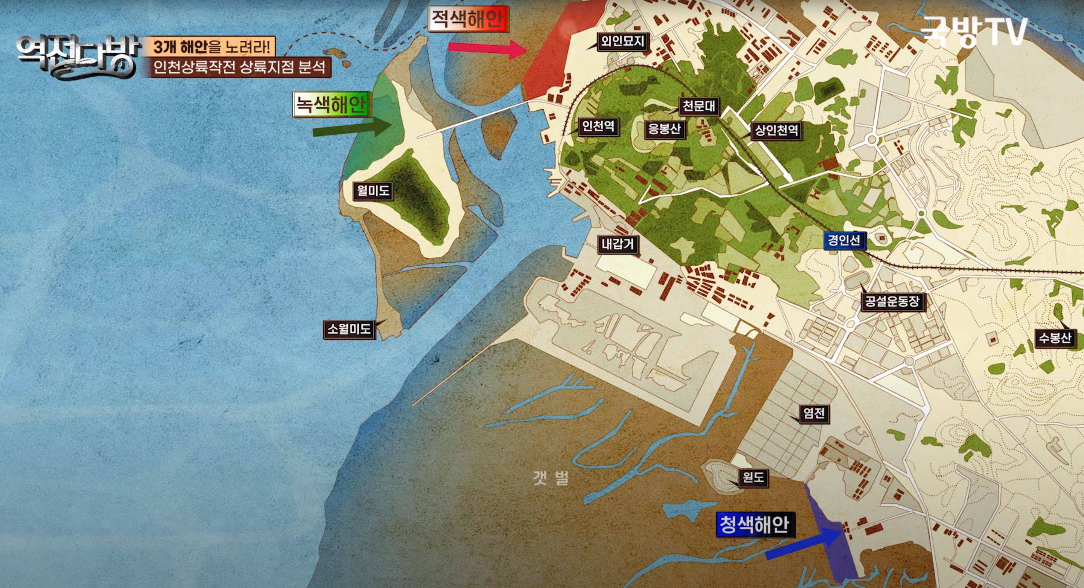 인천상륙작전은 총 3곳으로 나뉘어 상륙함
