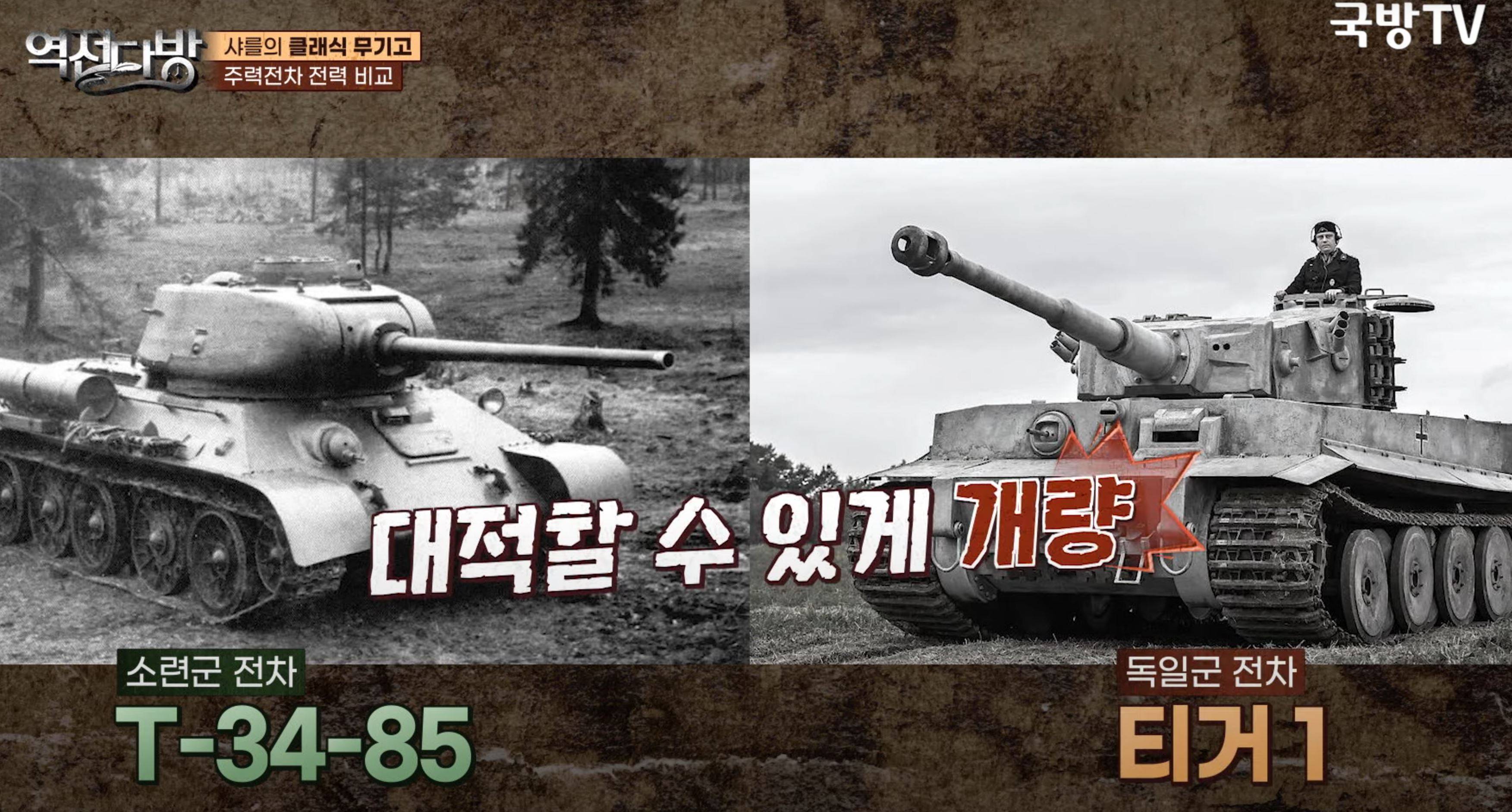 북괴의 T-34-85는 티거를 상대는 할 수 있을 정도의 스펙임