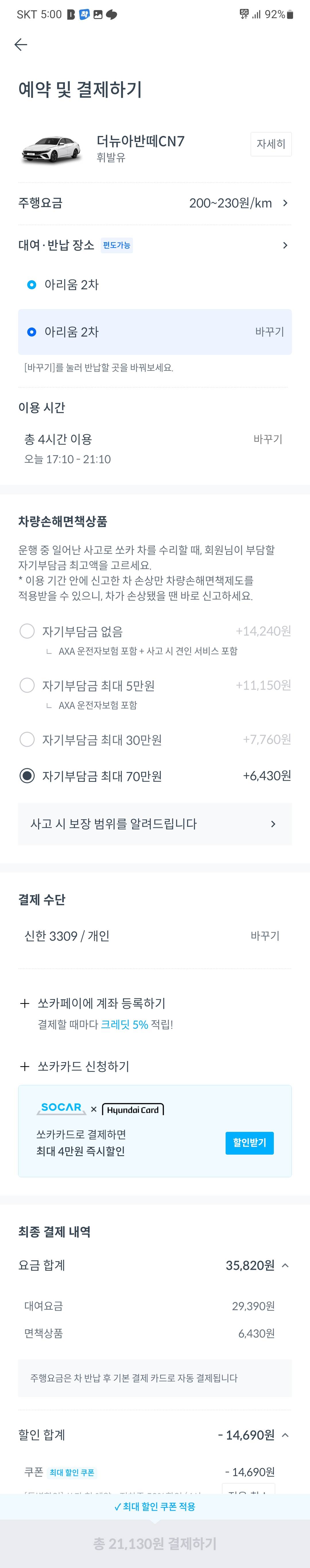 GV80의 자기부담금 제로가 보험비 23100인데 아반떼n자기부담금 50만원이 39000원 ㅋㅋㅋㅋㅋ