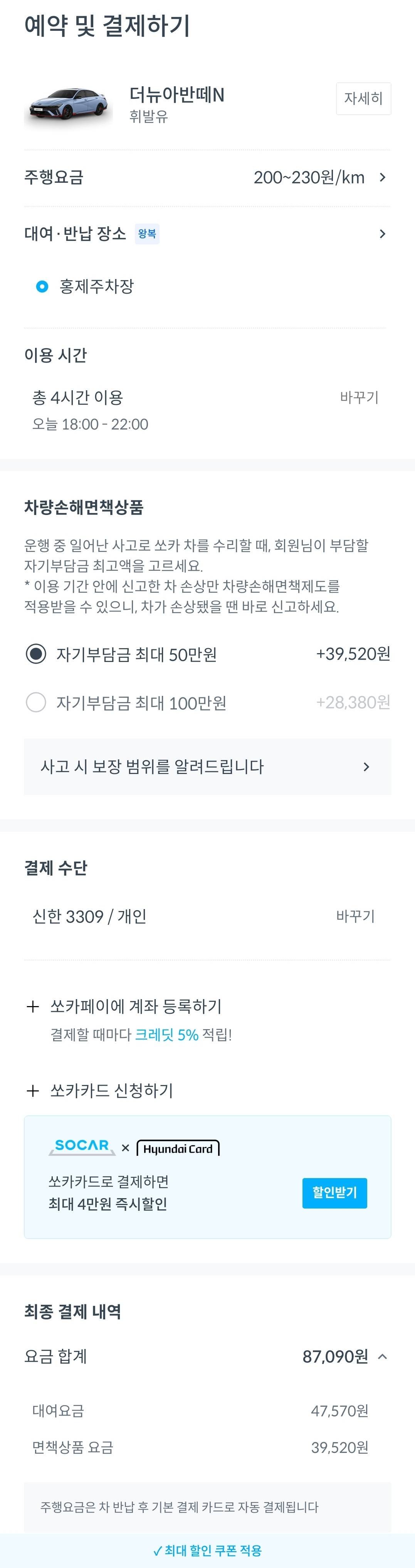 내가 다음주에 서울에서 차 렌트에서 움직일일이 있어서 견적짜면서 그 잘난 아반떼n몰아볼까 해서 검색을해봄
